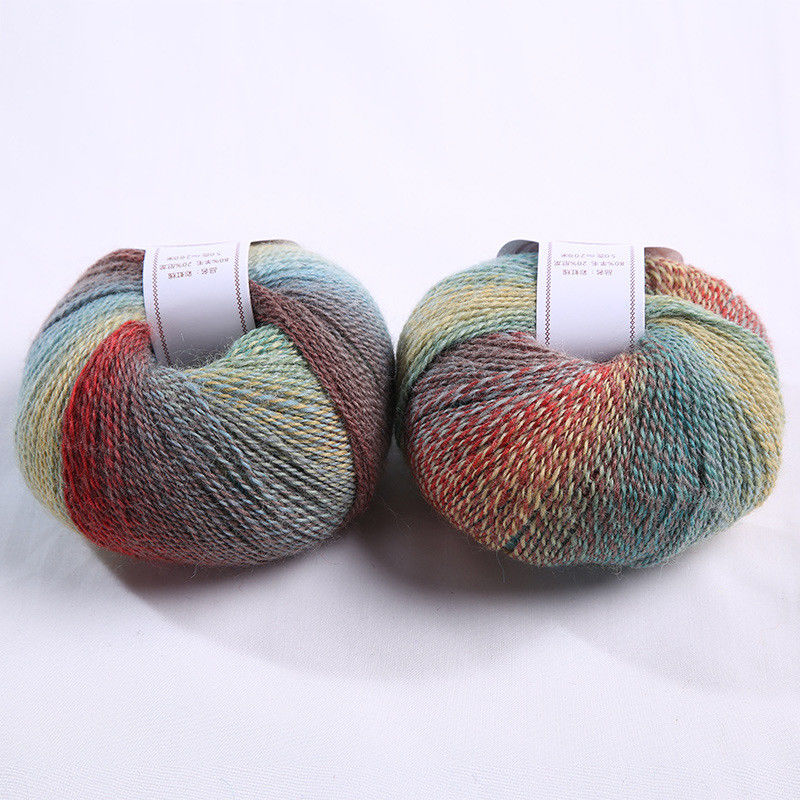 عمده فروشی 50 گرمی نخ بافندگی پشم نایلون نخ ترکیبی بافتنی دست بافتنی رنگین کمان توری بچه